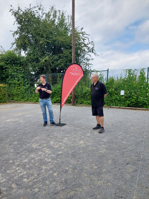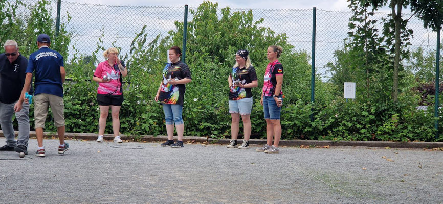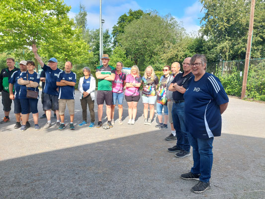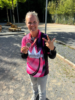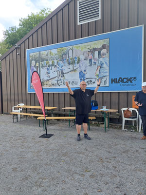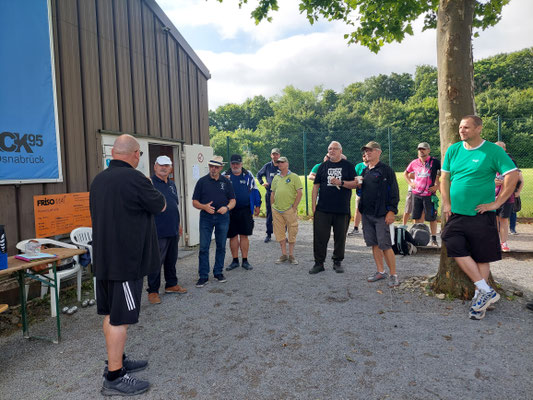 Am Samstagmorgen begrüßte der Fachwart Gerd Blickwede bei ganz schönem, aber angenehmen Wetter 18 Teams aus Braunschweig, Oldenburg, Bremen und Osnabrück, wobei dieses Mal viel mehr Teams als bisher teilnahmen. Von Osnabrück nahmen 7 Teams teil. Es wurde im Schweizer System gespielt. Daran nahmen teil: Ingo Grothmann mit Marcel Plogmann (4x gewonnen und 1x verloren), Kristoffer Jansen mit Micaela Schwenker (3x gewonnen und 2x verloren), Christin Schwenker mit Nadine Gebennus (3x gewonnen und 2x verloren), Max Hoischen mit Patrick Pick (3x gewonnen und 2x verloren), Sabrina Schwenker mit Laura Pompetzki (2x gewonnen und 3x verloren), Martina Leker-Grothmann mit Lisa Dreishing (2x gewonnen und 3x verloren) und Marc Morgenroth mit Pascal Wagenknecht (5x verloren). Nach 2 Runden gab es Mittagsessen, es wurde gegrillt. Viele nahmen sich ein Salat und Bratwurst. Am Nachmittag gab es noch leckere Kuchen. So gegen 17 Uhr waren die Spiele beendet und Gerd übernahm die Ehrung. Es wurde spannend, wer Landesmeister wurde. Den 1. Platz übernahm ein Bremer Team und überraschenderweise kamen Ingo und Marcel auf den 2. Platz und sie bekamen jeder ein Pokal. Es hat allen viel Spaß gemacht und einige freuen sich schon auf die Landesmeisterschaft am 23.08.2025 in Oldenburg.